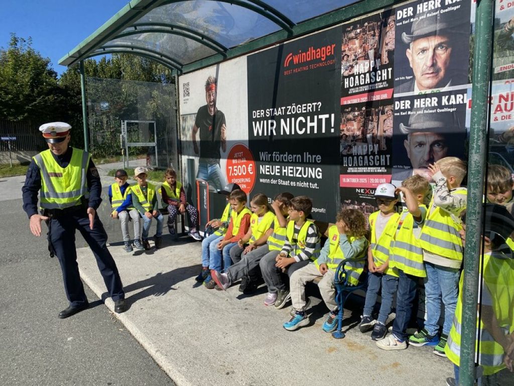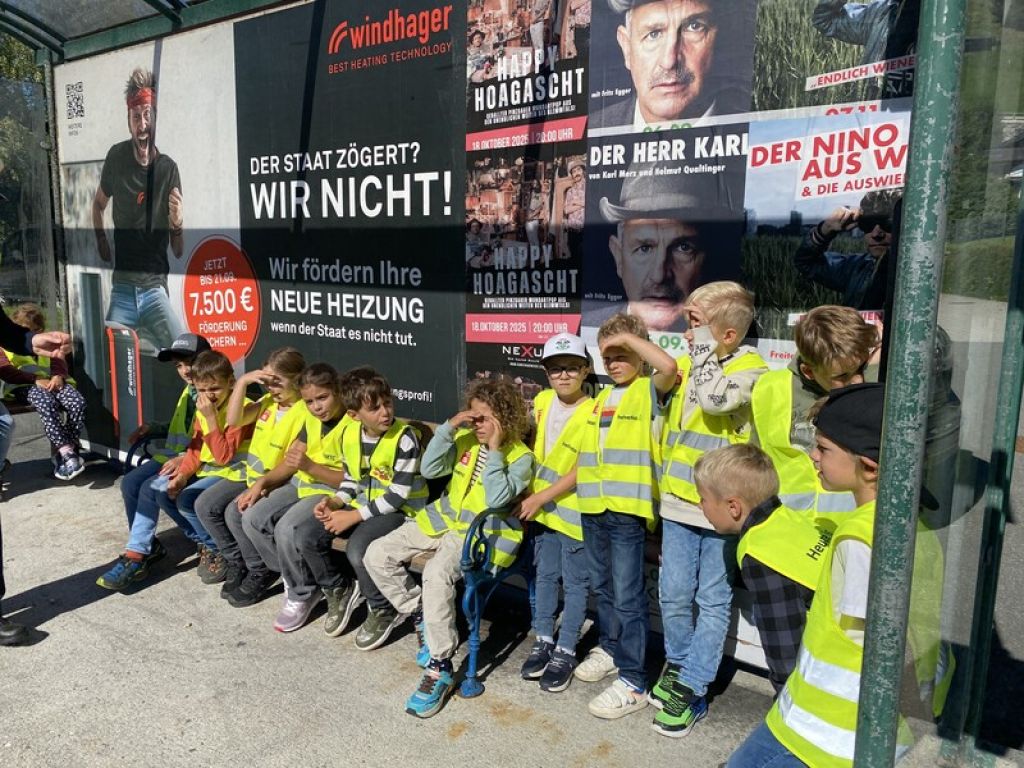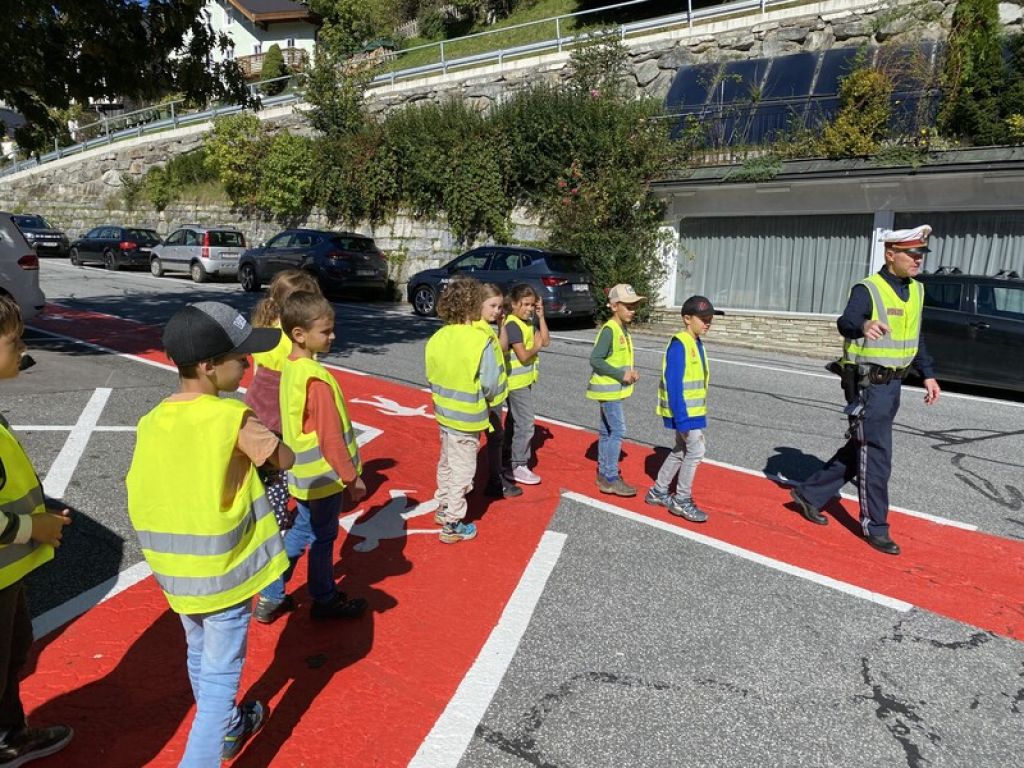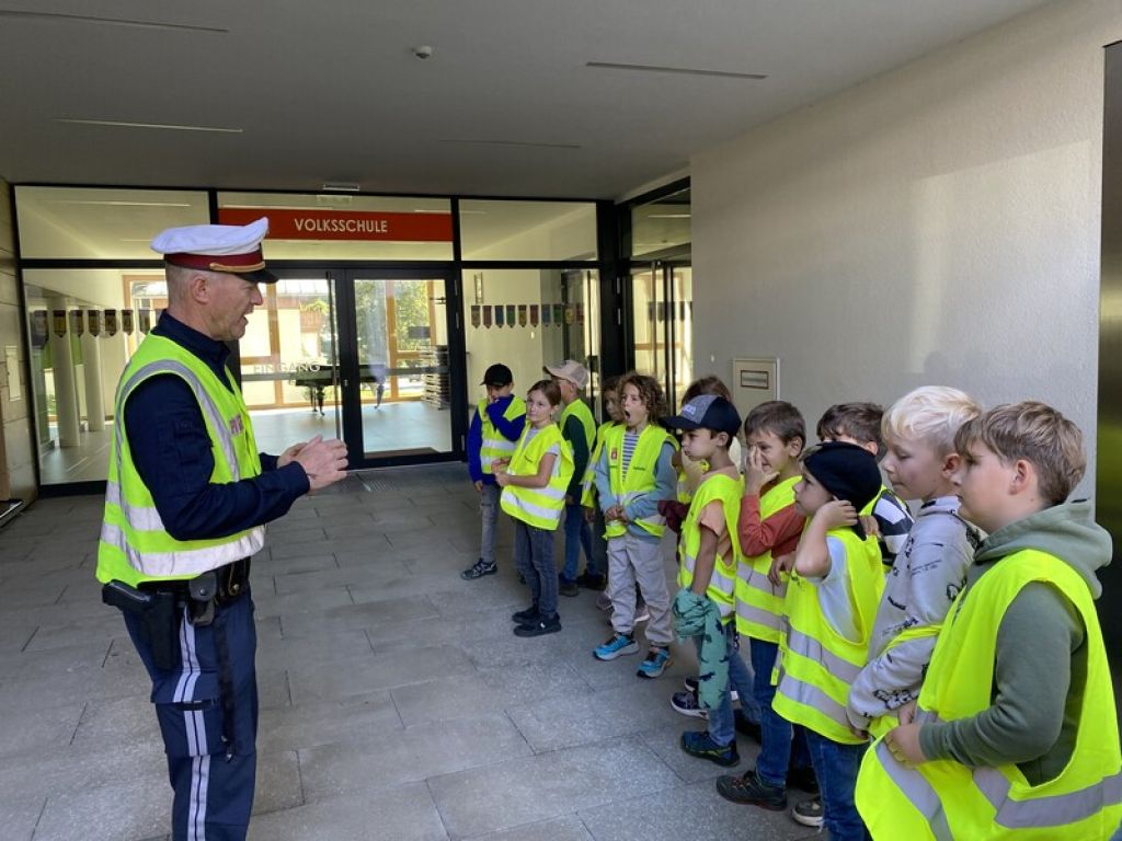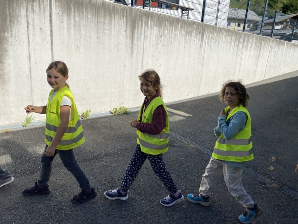 "Sicherer Schulweg" - wie jedes Jahr wurden die Kinder auf wichtige und gefährliche Stellen rund um das Schulhaus aufmerksam gemacht und für den Verkehr sensibilisiert!